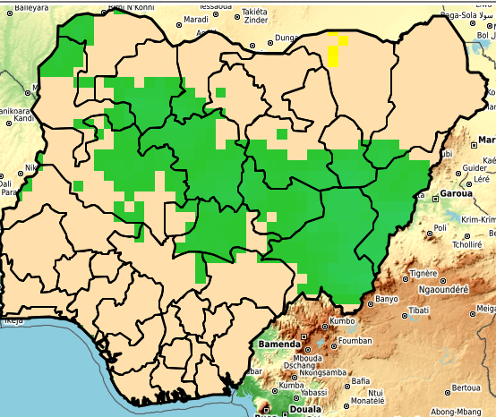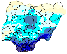 one-third ("tercile") of the 1991-2020 historical distribution in Nigeria given the